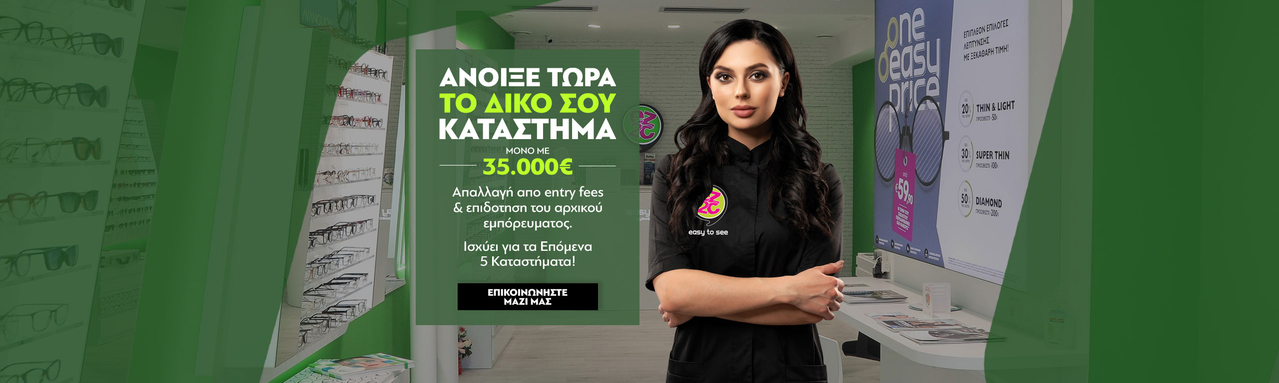 Ανοιξε το δικό σου easy to see με μόνη προϋπόθεση τη πρόσληψη οπτικού με άδεια ασκήσεως επαγγέλματος.
